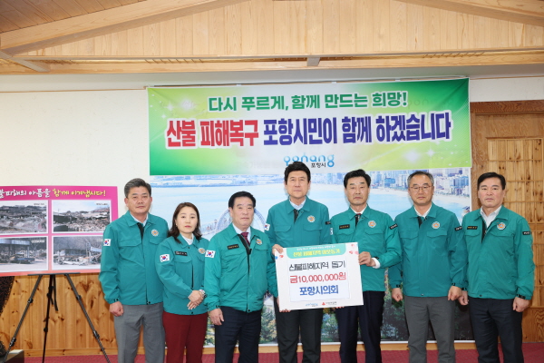 (경북=NSP통신) 조인호 기자 = 포항시의회(의장 김일만)가 최근 경북 지역에서 발생한 산불 피해 복구와 이재민 일상 회복 지원을 위해 1천만 원을 기탁했다.