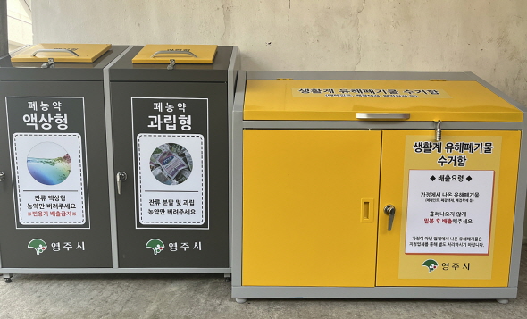 영주시 환경보호과 관계자는 “생활계 유해폐기물인 폐농약과 폐페인트‧폐광택제‧폐접착제의 전용 수거함 설치를 통해 체계적인 수거‧처리가 가능해지고 환경오염 및 안전사고 예방에도 기여할 것으로 기대된다”고 밝혔다.