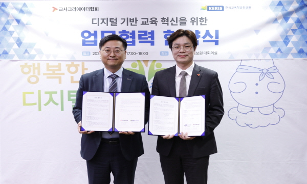 (경북=NSP통신) 김대원 기자 = 한국교육학술정보원(원장 정제영, 이하 케리스)과 사단법인 교사크리에이터협회(회장 이준권, 이하 교크협)는 지난 7일 디지털 교육 문화 향상과 정보 공유·활용 협력을 위한 업무 협약을 체결했다.