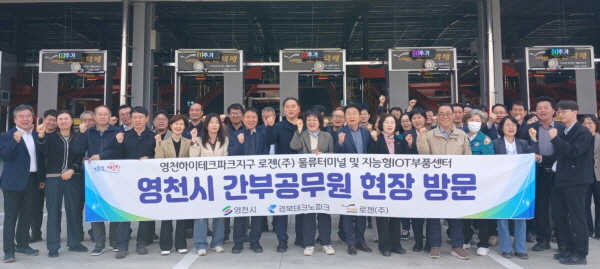 (경북=NSP통신) 김대원 기자 = 영천시(시장 최기문)는 9일 간부공무원을 대상으로 영천하이테크파크지구 내 로젠 물류터미널과 지능형 IoT부품센터 현장 견학을 실시했다.