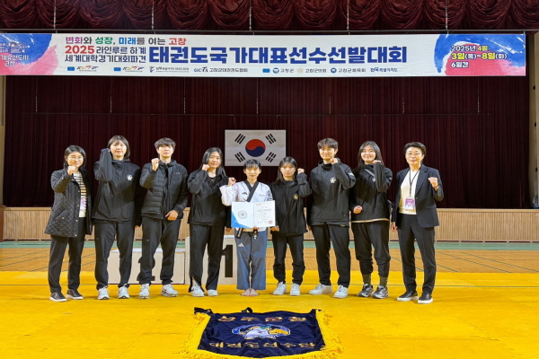 (경북=NSP통신) 김대원 기자 = 전북 고창군립체육관에서 개최된 2025년 하계세계대학경기대회 파견 태권도 국가대표 선발대회에 성주군 여자태권도 선수단 손민선 선수가 참가해 국가대표로 발탁되는 쾌거를 이루었다.