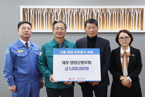 이기석 재포영양군향우회 회장은 “이번 산불피해로 아픔을 겪고 계신 분들께 작음 보탬이라도 되고자 기부를 결정했으며 피해 주민들의 빠른 일상 회복을 기원한다”고 전했다.