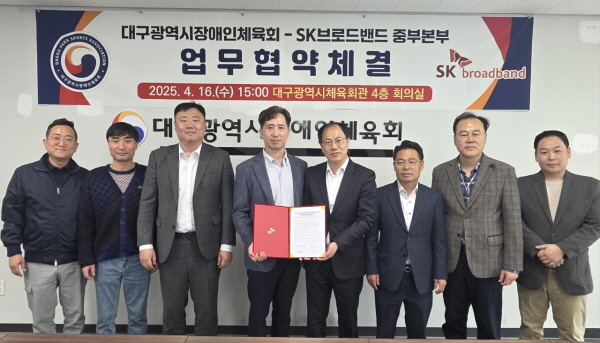 SK브로드밴드 중부본부는 업무협약을 체결해 장애인체육 발전을 위한 각종 후원과 혜택을 제공해 사회공헌에도 선도적인 역할을 담당하기로 했다.