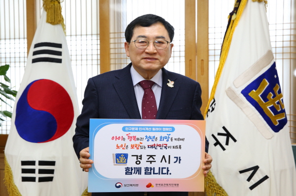 (경북=NSP통신) 조인호 기자 = 경주시는 저출생 문제에 대한 국민 인식 개선을 위해 추진 중인 ‘인구문제 인식개선 릴레이 캠페인’에 동참했다고 17일 밝혔다.
