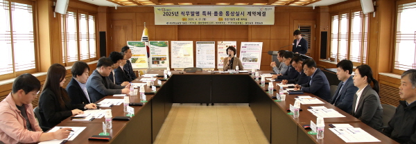 이날 계약식에서는 상향식 농약 분무 장치 등 특허기술 5건, 떫은감 ‘금동이’ 등 품종 2건을 포함한 총 7건의 직무발명 성과의 사업화를 위한 통상실시 계약을 체결했다.