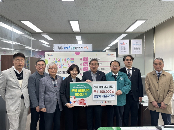 (경북=NSP통신) 조인호 기자 = 포항시 재향군인회는 지난 22일 포항시를 방문해 경상북도 산불 피해 지역 주민들을 돕기 위한 성금 440만 원을 전달했다.