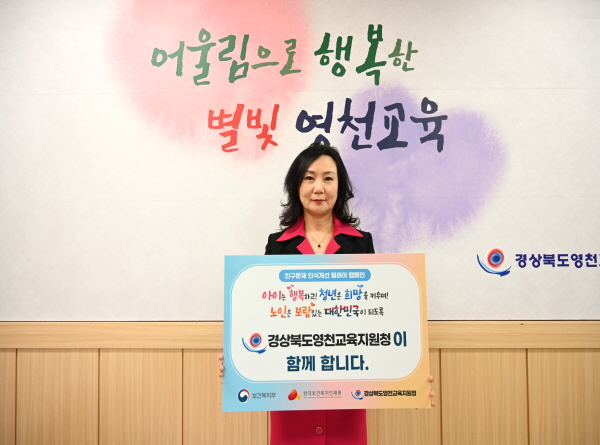 (경북=NSP통신) 김대원 기자 = 경상북도영천교육지원청(교육장 신봉자)은 지난 22일 저출생·고령화에 따른 학령인구 감소 문제를 알리고 사회적 인식을 제고하기 위한 인구문제 인식 릴레이 캠페인에 동참했다.