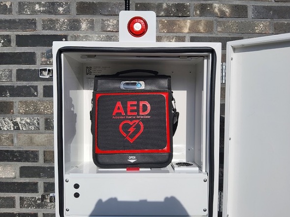 이번에 설치한 옥외형 자동심장충격기는 기온변화 감지 센서, 항온 기능이 탑재된 보관함을 활용해 실외에서도 보관 및 사용할 수 있다.