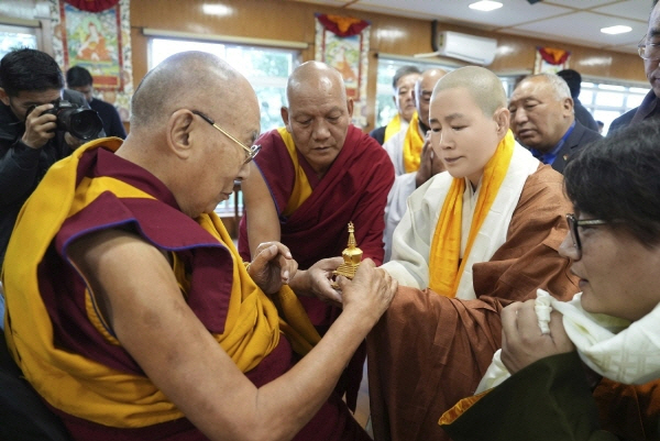 원법사 주지 해운스님은 지난해 12월 9일 다람살라 티베트 법왕궁에서 달라이라마 존자님으로부터 석가모니 부처님 진신사리를 하사받았다.
