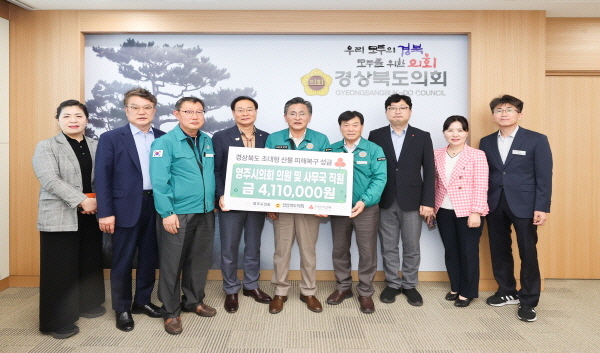 박성만 의장은 “어려운 시기에 따뜻한 마음을 모아주신 김병기 의장님을 비롯한 영주시의회 의원과 직원 여러분께 깊이 감사드린다”며 “경상북도의회도 피해 도민들이 다시 희망을 갖고 일어설 수 있도록 끝까지 함께하겠다”고 밝혔다.