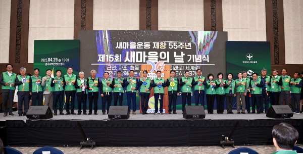 (경북=NSP통신) 조인호 기자 = 경상북도는 새마을운동 제창 55주년을 맞아 경상북도새마을회 주관으로 29일 경주화백컨벤션센터에서 ‘제15회 새마을의 날 기념식’을 개최했다.