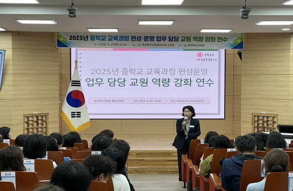 (경북=NSP통신) 조인호 기자 = 경상북도교육청(교육감 임종식)은 29일과 30일 2일간 구미시에 있는 경상북도교육청연수원(서부권, 143명)과 포항교육지원청(동부권, 120명)에서 도내 전 중학교 교육과정 업무 담당 교사들을 대상으로 ‘중학교 교육과정 편성운영 업무 담당 교원 역량 강화 연수’를 개최했다.