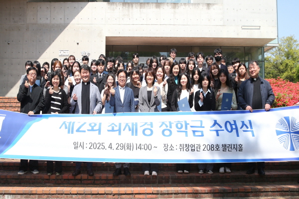 (경북=NSP통신) 김대원 기자 = 대구가톨릭대학교(총장 성한기)는 지난 29일 본교 취창업관에서 ‘제2회 최재경 장학금’ 수여식을 열고 총 55명의 학생에게 각 100만 원씩 장학금을 전달했다.