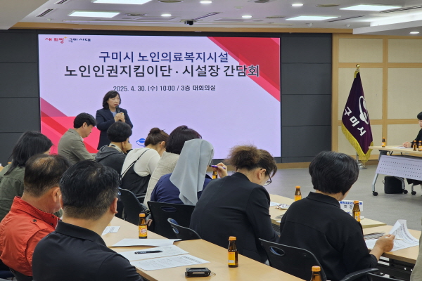 (경북=NSP통신) 조인호 기자 = 구미시는 30일 시청 대회의실에서 관내 노인의료복지시설 시설장과 인권지킴이단 64명이 참석한 가운데 노인학대 예방 간담회를 열었다.