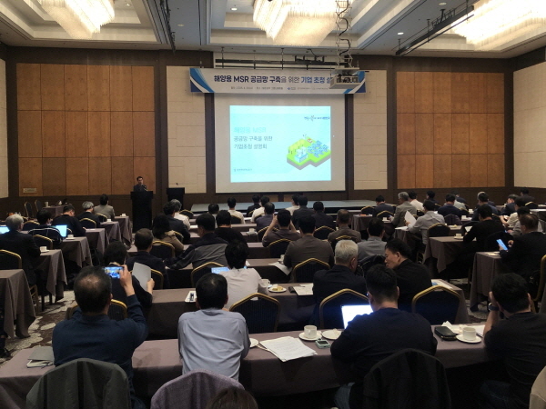 이날 설명회에는 주관기관인 한국원자력연구원과 현대건설, HD한국조선해양 관계자 등을 비롯해 용융염원자로 기술개발 사업에 참여를 희망하는 경북, 경남 등 중소·중견기업 관계자 150여 명이 참석했다.