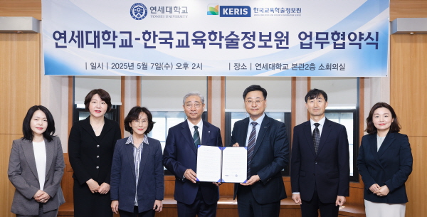 (경북=NSP통신) 김대원 기자 = 한국교육학술정보원(원장 정제영, 이하 케리스)과 연세대학교(총장 윤동섭)는 지난 7일 연세대학교 언더우드관에서 교육 및 연구 협력 강화를 위한 업무협약을 체결했다.