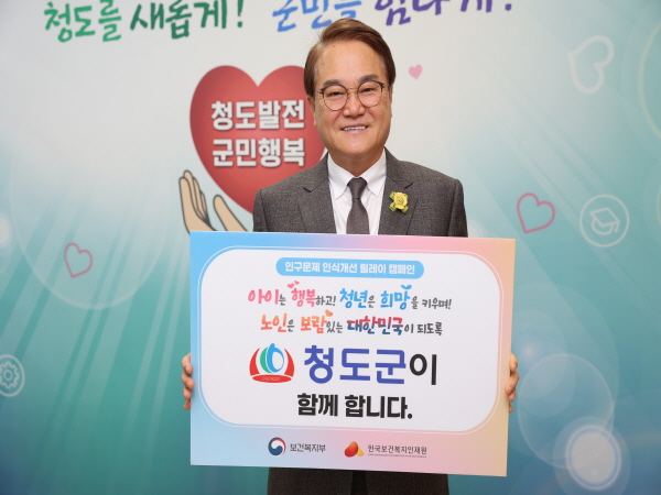 (경북=NSP통신) 김대원 기자 = 청도군(군수 김하수)은 저출생과 고령화에 따른 인구감소 문제에 대한 사회적 공감대 형성과 인식개선을 위해 ‘인구문제 인식개선 릴레이 캠페인’에 동참했다.