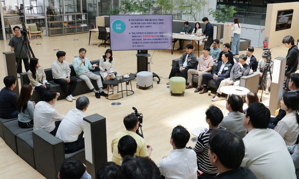 바리스타 체험 이후 진행된 타운홀 미팅 시간에는 사전에 받은 질문을 토대로 CEO와 임직원 간 약 1시간가량 자유로운 대화의 시간을 가졌다. 일방적 소통이 아닌 쌍방 소통을 위해 CEO가 질문에 대해 코멘트하면 직원이 화답하는 형식으로 진행됐으며, 대구 맛집, 사내 소모임, 세대공감, 소통방식, 지주사 역할 등 다양한 이야깃거리를 주제로 소통했다.