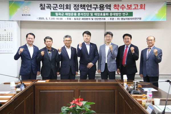 (경북=NSP통신) 김대원 기자 = 칠곡군의회 의원연구단체인 ‘칠곡군 저출산 인구감소 대책연구회(대표 오종열 의원)’와 ‘칠곡군 재정분석 및 진단연구회(대표 오용만 의원)’는 지난 2일 7일 2일간에 걸쳐 연구용역 착수보고회를 개최하고 본격적인 의원연구단체 활동을 개시했다.