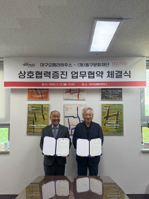 이번 업무협약은 양 기관이 지역 문화예술의 가치확산 및 활성화를 위한 전략적 협력을 기반으로 지속 가능한 문화예술 진흥과 발전을 목표로 마련됐다. 대구오페라하우스에서 진행된 협약식에는 정갑균 대구오페라하우스 관장과 최영은 동구문화재단 상임이사를 비롯한 관계자들이 참석했다.