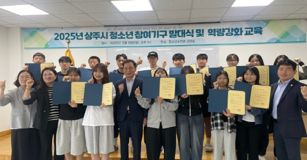 (경북=NSP통신) 김대원 기자 = 상주시는 지난 18일 상주시청소년수련관에서 ‘2025년 상주시청소년 참여기구 발대식’을 개최하고 청소년들이 지역사회의 주체로 당당히 성장할 수 있도록 역량강화 교육을 함께 진행했다.