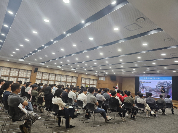 특별히 도로교통공단 안전교육부 예종균 교수를 초빙해 △개정된 도로교통법 △교통사고 예방을 위한 방어운전 요령 △운전자로서의 기본예절 및 교통법규 준수 △실제 교통사고 사례와 영상자료 소개 등 안전운전에 중점을 두고 교육을 실시했다.