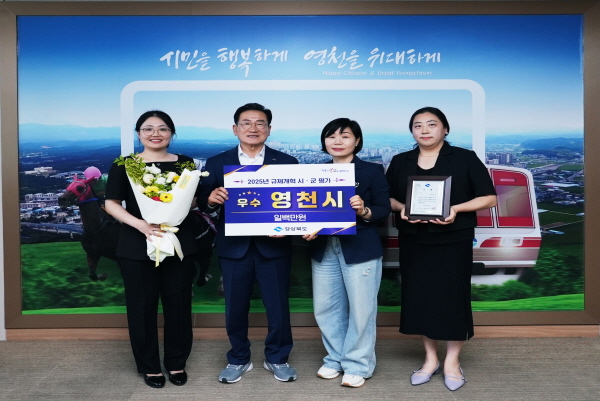 (경북=NSP통신) 김대원 기자 = 영천시는 지난 23일 안동 스탠포드호텔에서 열린 경북도 주관 ‘2025년 규제개혁 추진실적 시·군 평가’에서 우수상을 받았다.