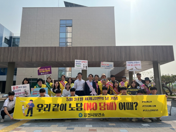 (경북=NSP통신) 김대원 기자 = 김천시(시장 배낙호)는 제38회 세계 금연의 날(5월 31일)을 맞아 지난 26일과 28일 2일간 청소년과 대학생을 대상으로 금연 캠페인을 실시했다.