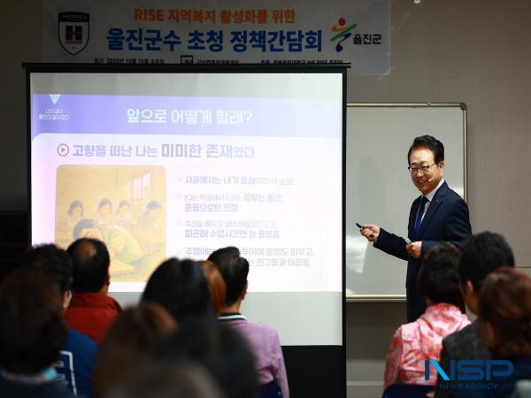 (경북=NSP통신) 김대원 기자 = 울진군(군수 손병복)은 지난 15일 경북전문대학교 울진캠퍼스에서 ‘지역복지 활성화를 위한 울진군수 초청 간담회’를 사회복지과 재학생들을 대상으로 진행했다.
