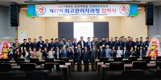 (전남=NSP통신) 김성철 기자 = 국립 순천대학교(총장 직무대리 강의성)는 지난 21일 사회과학대학 합동강의실에서 경영행정대학원 제27기 최고관리자과정 입학생 51명을 대상으로 입학 행사를 진행했다고 밝혔다.