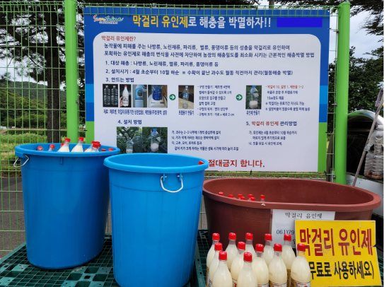 김동훈 식량작물팀장은 “버려지는 막걸리를 이용한 해충 유인제는 폐기물을 처리비용을 절감하고 지속 가능한 친환경 농업에 유용함으로 지역 내 농업인의 적극적인 활용을 기대한다”고 말했다.