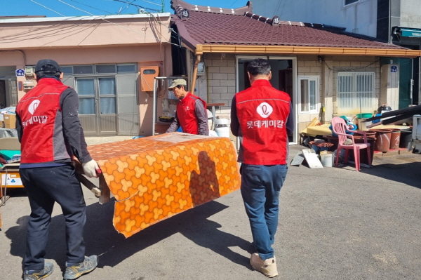샤롯데봉사단은 홀로 사는 어르신 주택의 외벽수선과 바닥평탄화, 거실 페인트 작업, 세면기 상·하수 설비와 장판, 세탁기, 신발장, 부엌수납장을 설치했다.