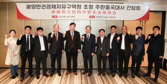 (전남=NSP통신) 김성철 기자 = 광양만권경제자유구역청(청장 송상락)은 지난 3월 30일 싱하이밍(邢海明) 주한 중국대사와 주한 중국상회 전남분회 대표단을 초청해 광양만권의 중국기업 성공사례 공유와 양 지역의 교류 활성화 방안을 논의했다.