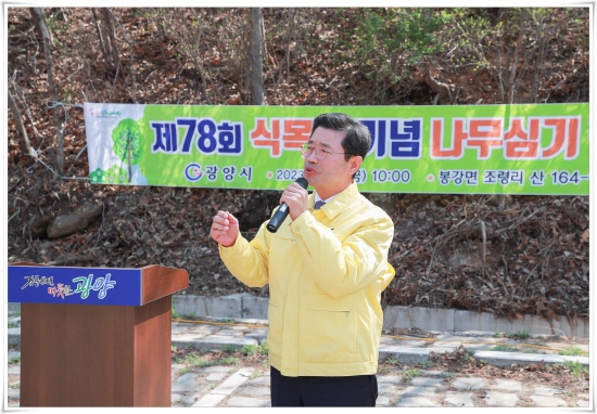 (사진 = 나무 심기 행사전 정인회 광양시장 인사말)
