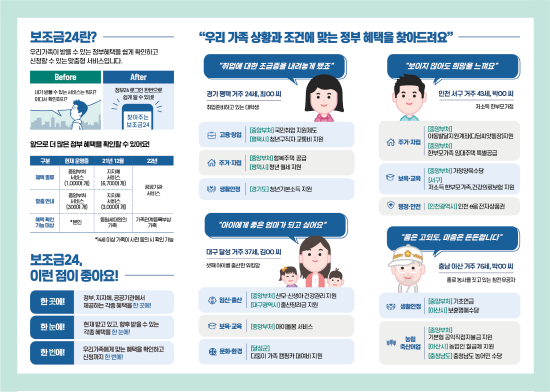 그동안 각종 정책적 혜택과 서비스를 시민들이 알지 못하거나 확인하기 어려워 신청하지 못한 경우가 많았는데 앞으로는 몰라서 못 받는 일이 없도록 ‘보조금24’에서 한눈에 확인할 수 있게 됐다.