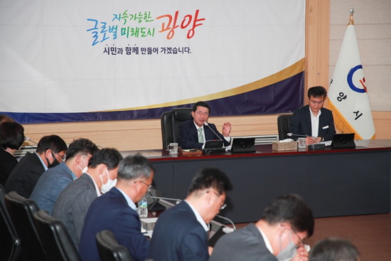 (전남=NSP통신) 김성철 기자 = 정인화 광양시장은 지난 3일 시청 상황실에서 국ㆍ소장과 실ㆍ과ㆍ소장 등 간부 공무원이 참석한 가운데 4월 중 확대간부회의를 열어 지난 1분기 시정성과를 뒤돌아보고 앞으로의 시정 방향을 점검하는 시간을 가졌다.