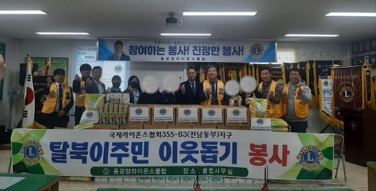동광양라이온스클럽은 작년 12월 3일에도 탈북민에게 김장김치를 전달하는 등 매년 탈북민의 안정적인 정착을 소망하며 정성을 담은 위문품을 전달하고 있다.