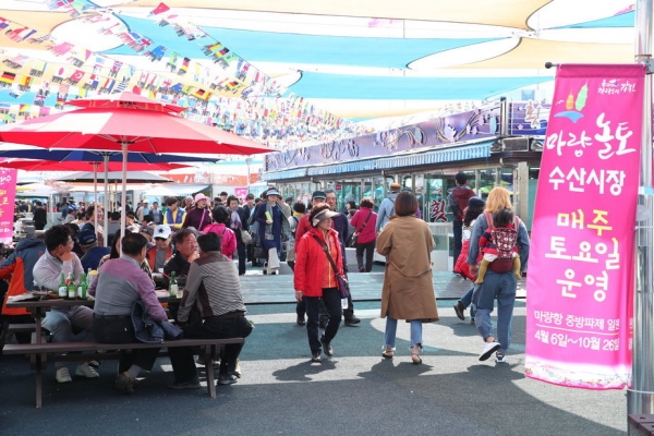 (전남=NSP통신) 김용재 기자 = 강진군의 대표 관광명소 중 하나인 마량놀토수산시장이 새로운 모습으로 단장해 주말 관광객 맞이에 나섰다.