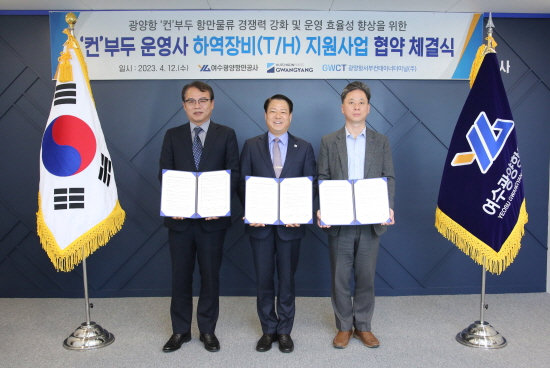 (전남=NSP통신) 김성철 기자 = 여수광양항만공사(사장 박성현, 이하 YGPA)는 광양항 컨테이너부두 운영사인 한국국제터미널, 광양항서부컨테이너터미널과 컨테이너 하역장비인 탑핸들러 지원사업 업무협약을 체결했다.