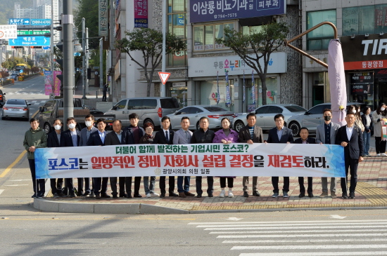 시의원들은 포스코는 ▲상생협력 방안을 즉시 마련할 것 ▲일방적인 정비 자회사 설립 결정을 재검토할 것, 포스코 홀딩스는 ▲미래 신산업을 광양시에 적극 투자할 것 등의 내용이 적힌 현수막을 들고, 침묵하고 있는 포스코가 시민의 요구에 즉시 응할 것을 촉구했다.