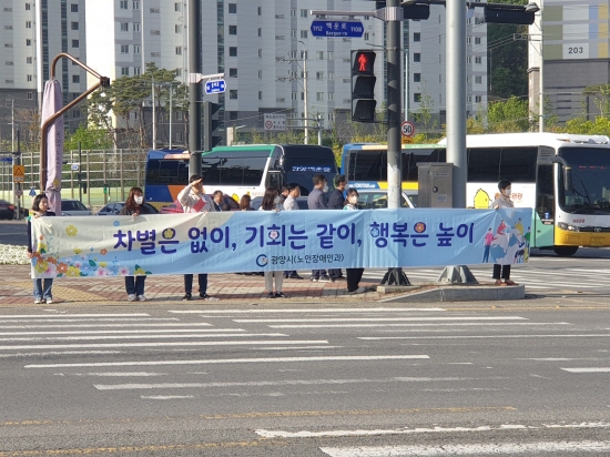 (전남=NSP통신) 김성철 기자 = 광양시는 제43회 장애인의 날을 맞이해 지난 17일 중마동 컨부두사거리에서 ‘2023년 장애인식개선 거리 캠페인’을 실시했다고 밝혔다.