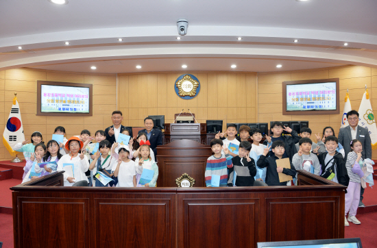 이 자리에는 정회기·박문섭·신용식 의원이 참석해 학생들을 환영했으며, 이어서 진행된 ‘의원과의 시간’에서는 ‘아파트 앞 인도를 만들어 주세요’, ‘마트 앞 신호등을 고쳐 주세요’ 등 학생들의 건의사항에 의원들이 아이들 눈높이에 맞춰 답변해 주며 풀뿌리 민주주의를 이해하는 소중한 시간을 가졌다.