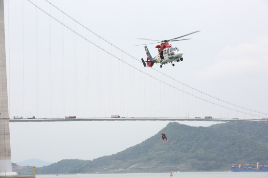 유관기관 인명구조 훈련 해경 응급헬기 익수자 구조 (사진 = 여수광양항만공사)