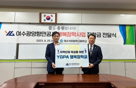 (전남=NSP통신) 김성철 기자 = 여수광양항만공사(사장 박성현, YGPA)는 여수·광양지역 미래 우수인재 육성을 위해 여수석유화학고(교장 이상용)와 광양햇살학교(교장 조남준)에 각각 장학금 1000만 원을 전달했다.