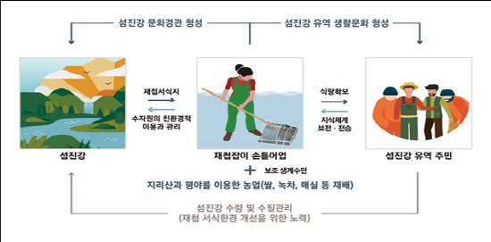 ‘광양‧하동 섬진강 재첩잡이’는 2018년 11월 국가 중요어업 유산 제7호로 지정됐으며, 해수부에서 세계중요농업유산 등재를 신청했다.