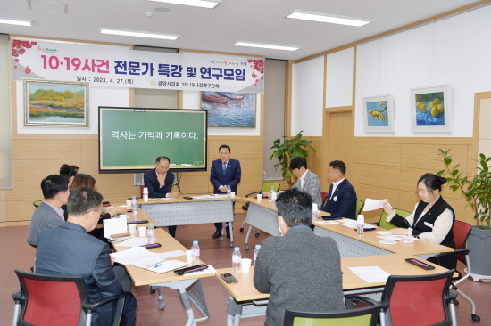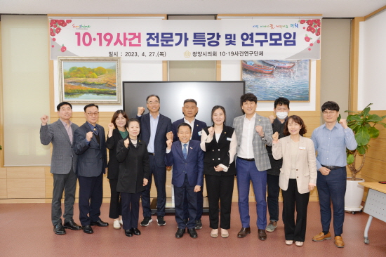 한편 ‘10․19사건 연구단체’는 지난 4월 3일 의회운영위원회 의결을 거쳐 구성되었으며, 올해 말까지 ▲광양지역 자료 조사를 통한 올바른 역사관 정립 ▲제도개선내용 발굴 ▲피해자ㆍ유족 명예회복 및 지원시책 강구 ▲시민 교육, 참여 및 연대 강화 시책 개발 등에 대해 연구를 진행할 예정이다.
