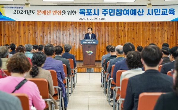 시는 26일 목포시청에서 주민참여예산에 대한 시민의 이해를 돕기 위해 ‘2024년 본예산 편성을 위한 주민참여예산 교육’을 실시했다.
