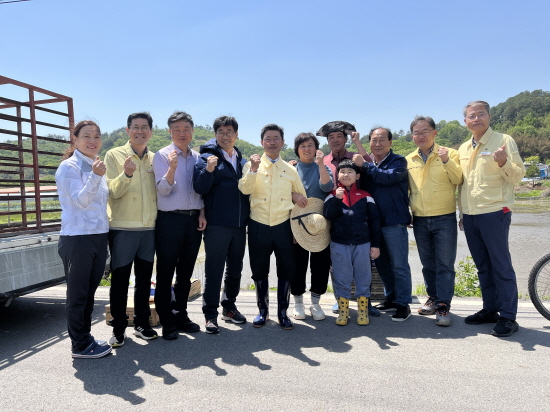 농업 현장의 애로사항 청취 농업인과 관계자들 격려 기념 찰영 (사진 = 광양시청)