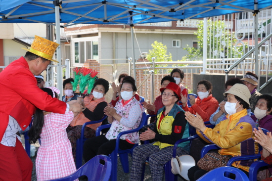 어촌과 도시의 모습이 잘 어울려진 주제로 공연단이 설 자리가 없을 정도로 어르신들의 즐겁게 헹복한 몸놀림은 그 무엇과도 바꿀 수 없는 순간이였다.