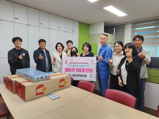 나눔 행사는 봉강면청년회 회원들이 봉강초등학교 교무실에서 봉강초 학생과 교직원을 대상으로 120개의 햄버거 세트를 전달했다.